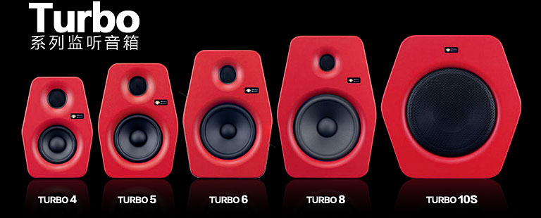 具体说到Turbo的4寸监听音箱,对于狭小的空间来说,它能有非常优秀的表现。它的总功率为50w(低音单元30w,高音单元20w),而频率响应范围为60Hz-30kHz,并拥有一个4寸的圆锥形低音单元。虽然看起来它们好像有点不中用……不过,事实并非如此!它们的分频输出和立体声像都非常的清澈干净,用户只需对背面板的控制键作出稍稍的调整即可。对于一个小型的监听音箱来说,它们摒弃了大量声音爆发的力量和一些刺耳的声音。Turbo系列的特点在与它们的许多的设计理念都几乎是集中在提高声音的质量上。每个监听音箱的底部都配有4个螺丝孔,这使它们能够被固定在Monkey Banana公司制造的Money Tree音箱支架上。而在监听音箱的包装中还附带了4个可安装的圆形橡胶把套以便在安装支架时保护音箱箱体。